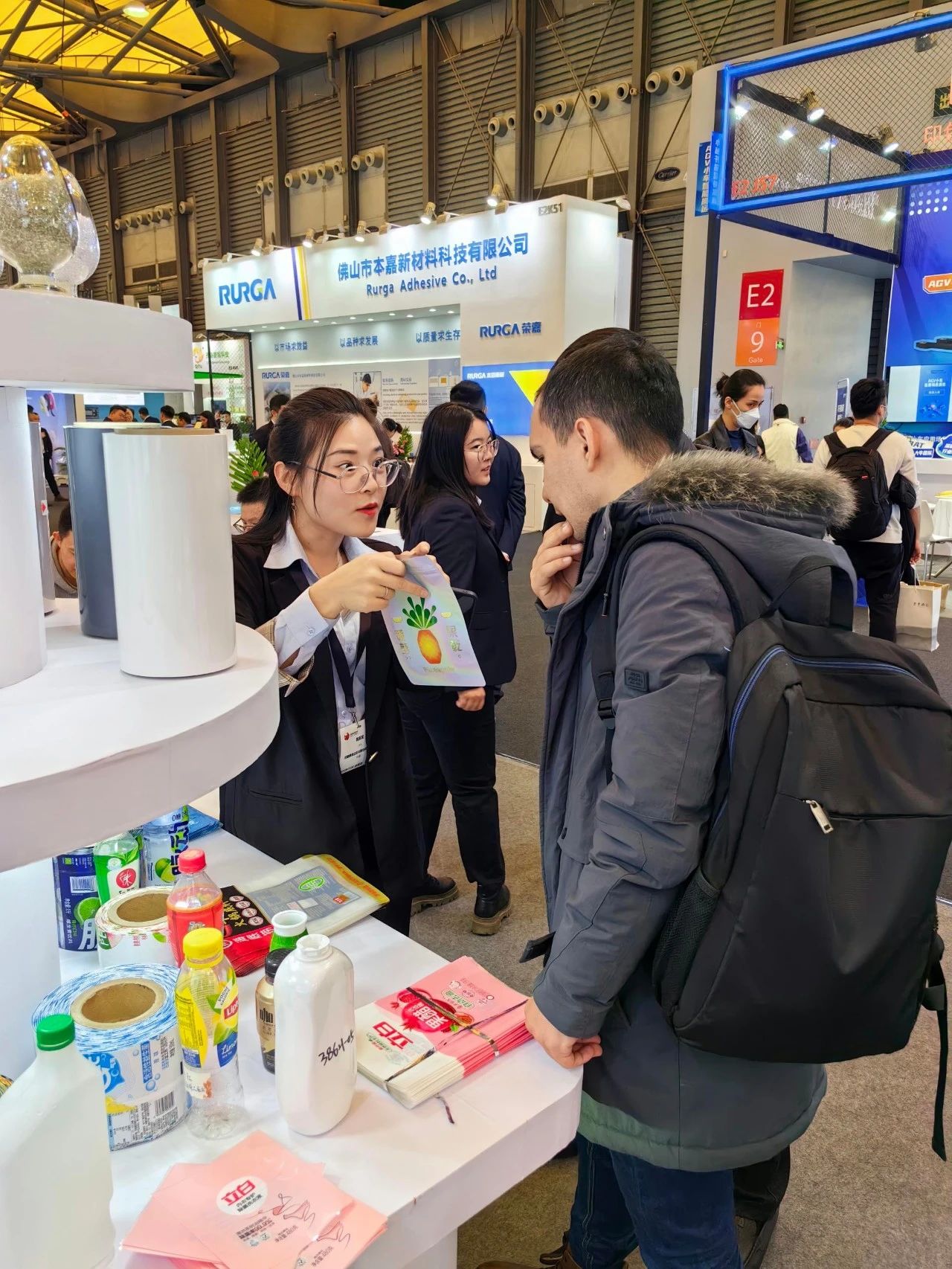 银金达展台位于E2馆J55展位,展区设计简洁大方、突出PETG产业链主题,在重点推介薄膜业务板块的同时、设置了PETG切片及银金达彩印产品展示专区,全面展示银金达PETG产业链风采。展会期间,除国内市场的众多新老客户外,银金达与土耳其、墨西哥、意大利等国家的老客户,以及来自泰国、巴基斯坦、以色列、也门、俄罗斯、白俄罗斯、多米尼加、哥伦比亚等国家的新客户进行了友好洽谈,充分交流市场信息,深入沟通业务合作细节。