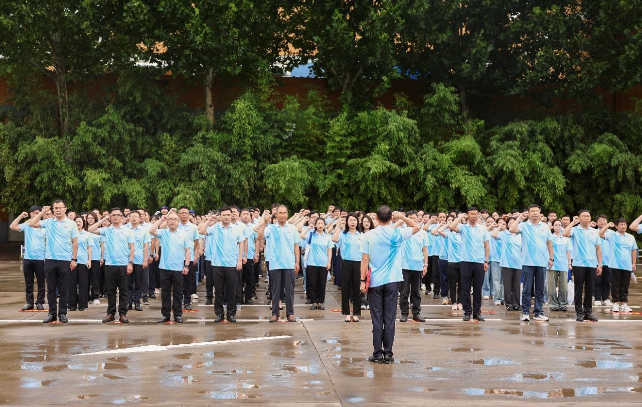 上午9:00,在唐庄干部教育学院主会场,大会在庄严的国歌声中正式拉开帷幕。全体与会人员肃立合唱,爱国情怀与企业担当在旋律中交融。随后,《银金达之歌》的激昂旋律响起,唱出了银金达人三十一年如一日的坚守与豪情。