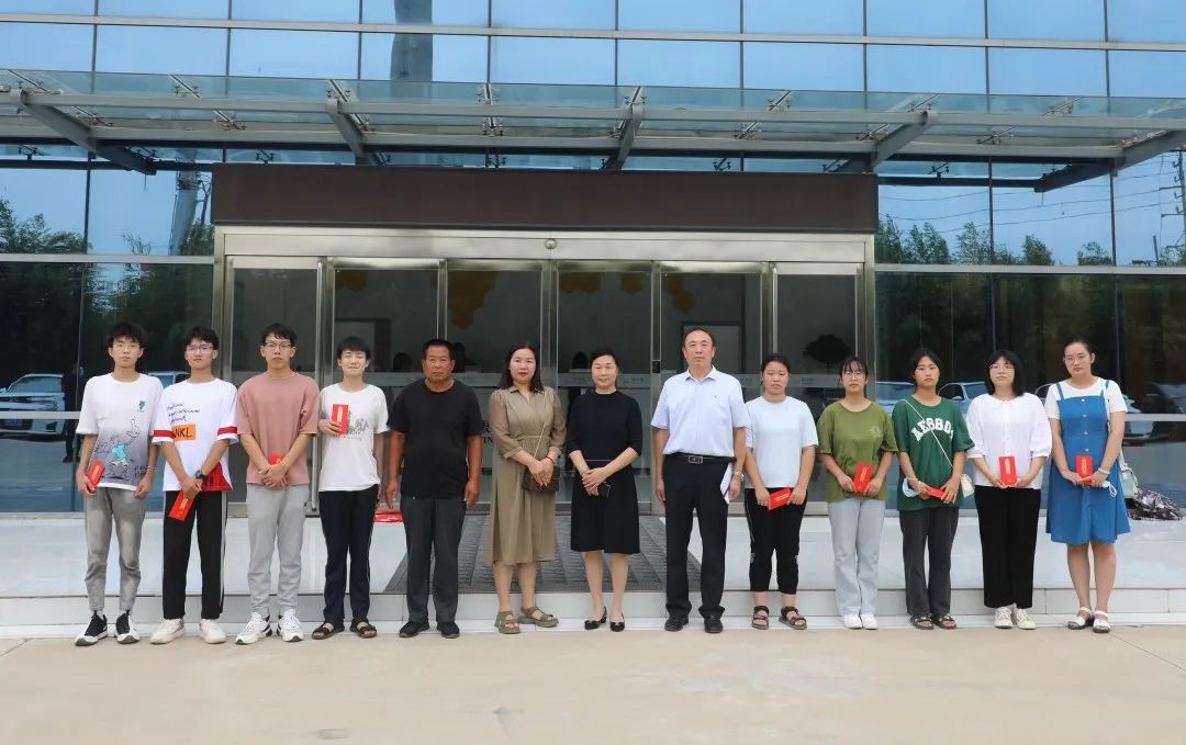 会议高唱《歌唱祖国》的歌声中结束。闫董事长与同学们一起合影留念,并与结对帮扶村王二庄村大学生合影留念。