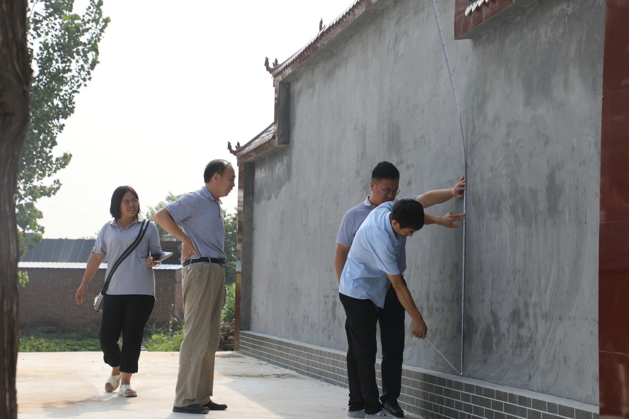 在王二庄村文化墙和文化活动广场,杨凤瑞一行仔细查看了项目建设情况,已建成文化广场面积662平方米,文化墙立体面积45平方米,杨凤瑞对项目建设质量表示满意,并对两个场地的后续建设方案进行讨论,经现场测量,确定了文化墙和广场背景墙的宣传设计规划。