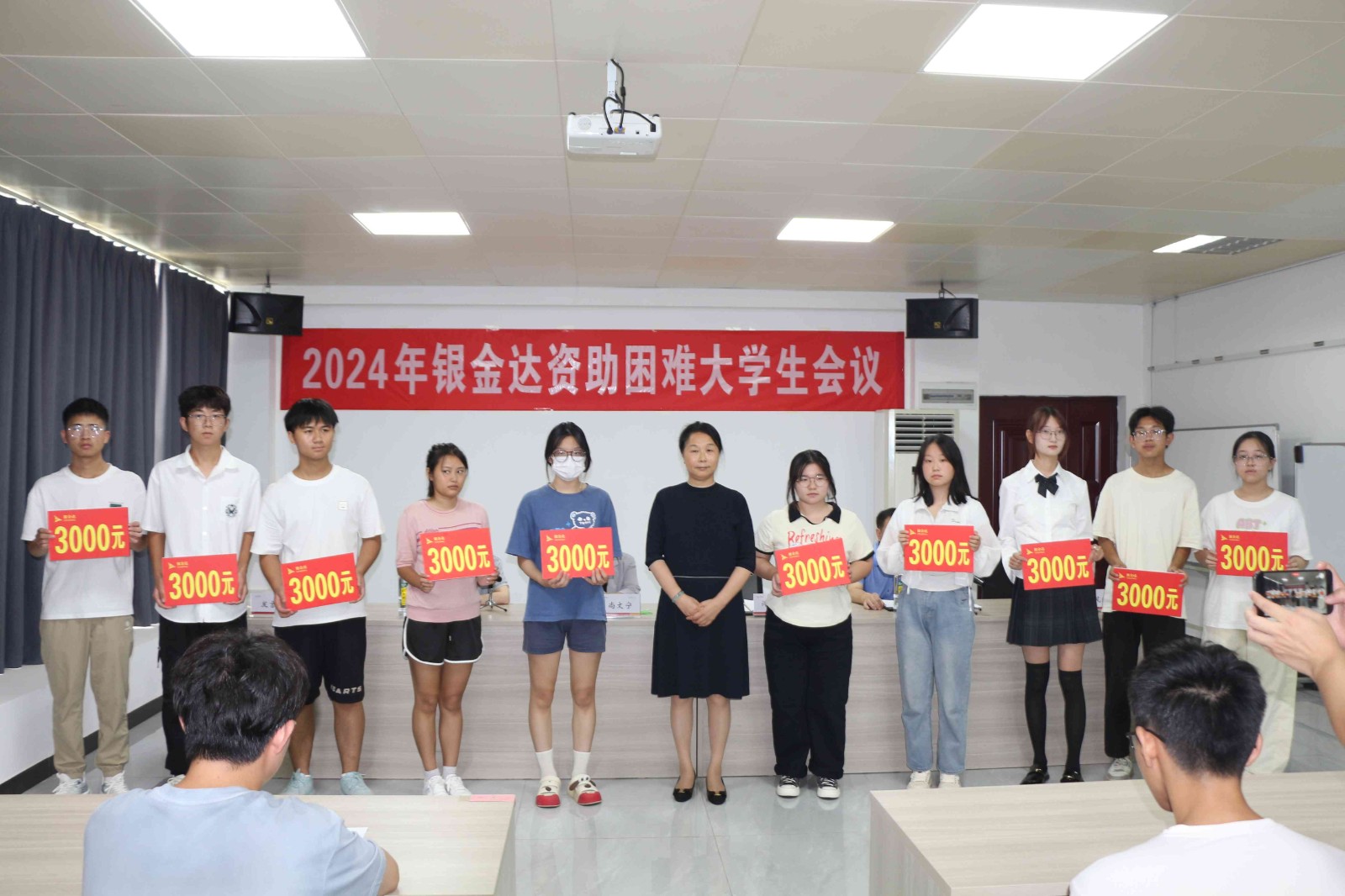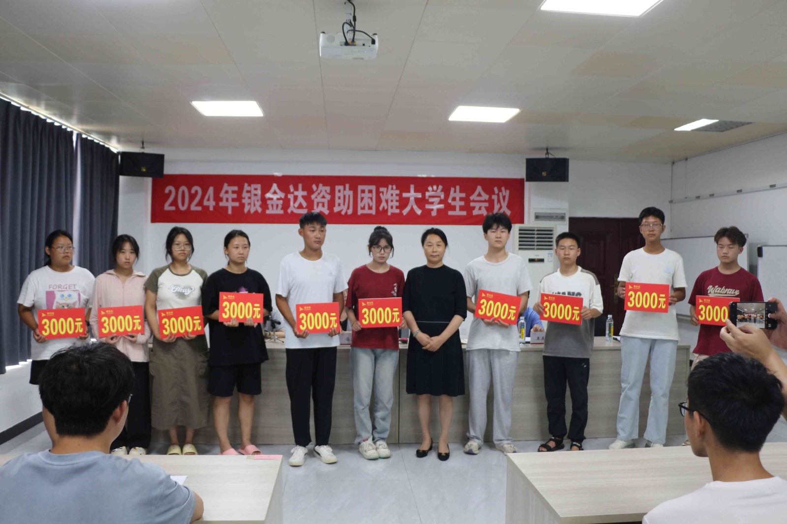 银金达集团党委书记、董事长闫银凤亲自为各位困难大学生发放资助金。